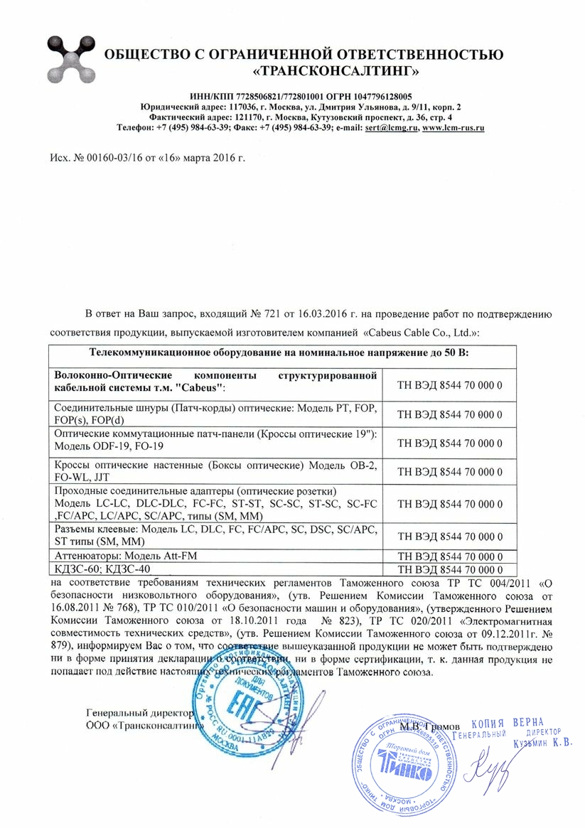 Сертификат Cabeus