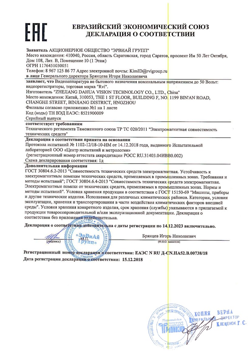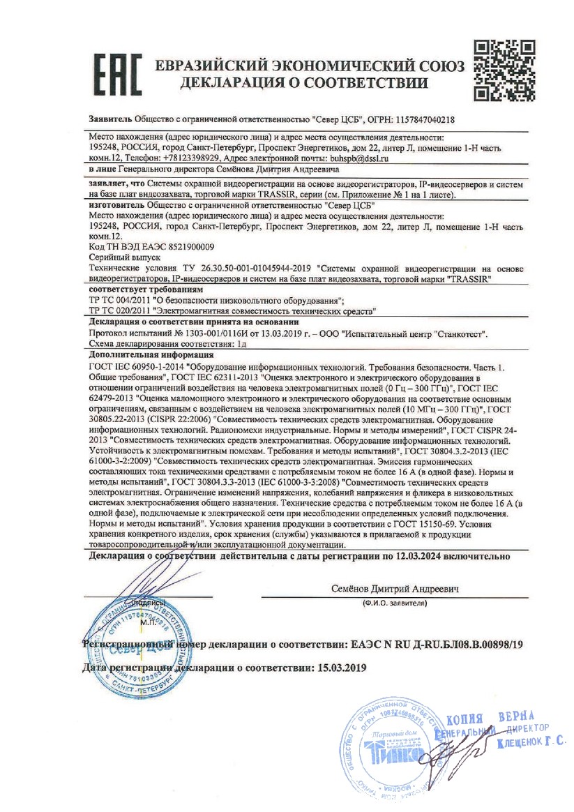 Сертификат TRASSIR MiniNVR AF Pro 32 v2