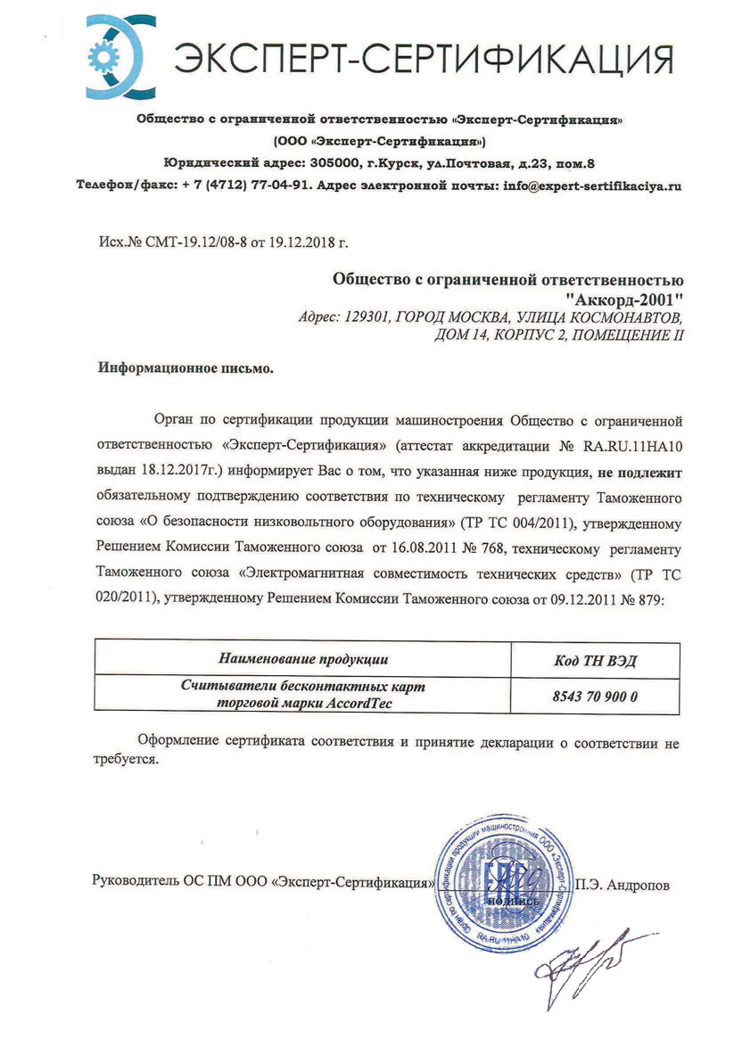 Сертификат FE-0104DE KIT "Защита"