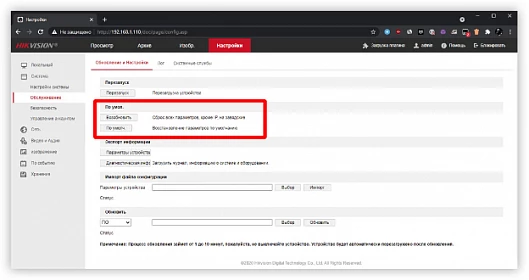 Сброс через веб интерфейс IP-камеры
