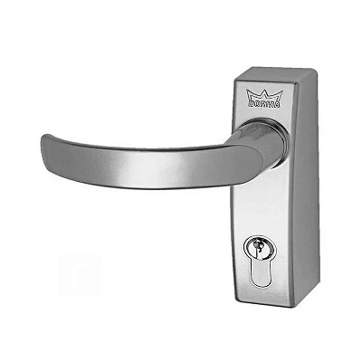 Внешний фитинг с нажимной ручкой, для противопожарных и дымозащитных дверей толщиной до 60 мм. Со встроенным уплотнителем для использования с европрофильным полуцилиндром.