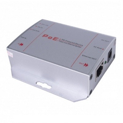 PoE сплиттер, предназначен для разделения линии PoE на линию питающего напряжения DC 5/12В и линию Ethernet. Управление сплиттером осуществляется DIP-переключателями для изменения питающего напряжения DC 5/12В. Возможно удлинение линии Ethernet на дополнительные 100 метров. Исполнение в металлическом корпусе IP20, с возможностью крепления на стену. Поддерживаемые температуры  -20°C ~ +55°C. Питание от линии РоЕ.