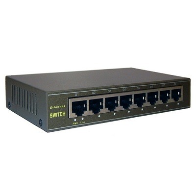 Сетевой коммутатор 8 портовый неуправляемый;  8x10/100/1000Base-T Ethernet RJ45; DC 9 В; 6 Вт; IP20; -20...+55°C; 142х79х27 мм.