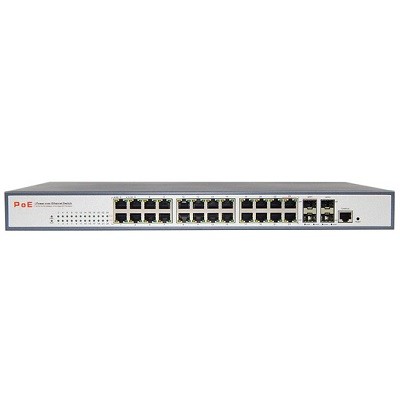 Управляемый РоЕ-коммутатор для CCTV предназначен для коммутации IP-устройств по проводной сети. Коммутатор оснащен двадцатью четырьмя LAN-портами с поддержкой питания РоЕ-устройств до 30Вт на порт и четырьмя оптическими SFP-портами. Суммарное PoE питание до 400Вт. Исполнение в металлическом корпусе классом защиты IP30 с комплектом крепления в 19" стойку или шкаф. Питание от сети 220В.