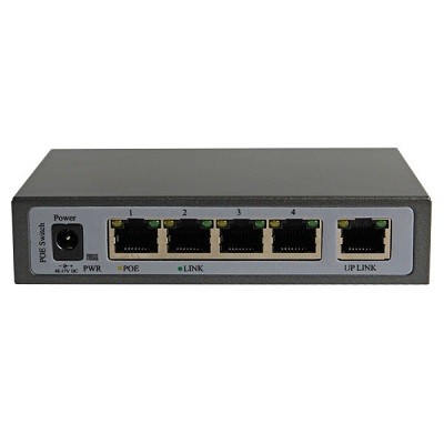 PoE коммутатор для CCTV. 4xRJ45 PoE 10/100 до 15Вт и 1xRJ45 Uplink 10/100. Неуправляемый. Производительность до 0.744Mpps. Store-And-Forward, Auto-negotiation, Flow Control, Full duplex. Бюджет PoE до 60Вт. Питание DC 48~57В (блок питания 52В / 1.25А в комплекте), потребление до 65Вт. Температурный диапазон 0°C ~ +55°C, IP20, вес 780г, размеры 125х73x27мм. Металлический кожух.