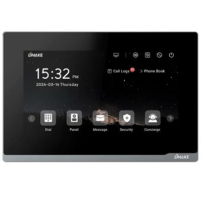 Dnake E216D оснащён ёмкостным сенсорным экраном диагональю 7 дюймов с разрешением 1024 x 600, что гарантирует чёткость изображения и удобство управления. Монитор работает на операционной системе Linux и поддерживает протокол SIP v2.0, обеспечивая стабильную двустороннюю связь.