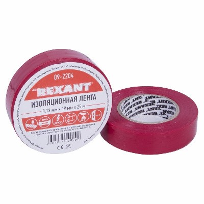 —Изолента ПВХ 19 мм х 25 м, красная (09-2204) Rexant Расходные Материалы