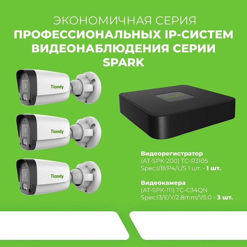 В комплекте 3 камеры ((AT-SPK-111) TC-C34QN Spec:I3/E/Y/2.8mm/V5.0) и 1 видеорегистратор ((AT-SPK-200) TC-R3105 Spec:I/B/P4/L/S).