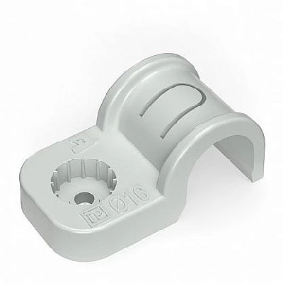 Крепеж-скоба пластиковая односторонняя для прямого монтажа атмосферостойкая серая в п/э d16 мм (50шт/750шт уп/кор) (PR13.0368)