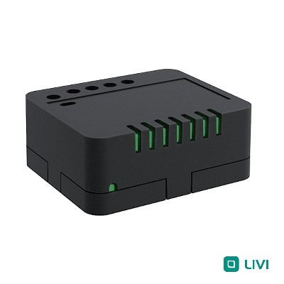 Реле исполнительное силовое радиоканальной системы Livi; f-раб.868 МГц; 1 релейный выход, U-пит.220 В, I_коммут.16 А (max), P-нагр.3,2 кВт; t-раб.-20+50°С.