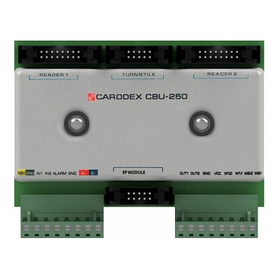 Также на контакты клемм модуля выводятся сигнальные линии подключения оптических датчиков, светодиодной индикации на крышке турникета и линия подключения сигнала "тревога" охранно-пожарной сигнализации.