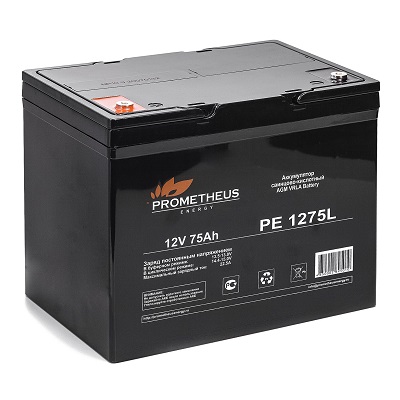 Свинцово-кислотный аккумулятор Prometheus Energy PE 1275L создан по технологии AGM, с абсорбированным электролитом и увеличенным сроком службы. Предлагаемый аккумулятор является не обслуживаемым. Он герметизирован, а образующийся газ рекомбинируется. Долив жидкости не требуется. Корпус аккумулятора изготовлен из негорючего ABS пластика. Емкость аккумуляторной батареи для ИБП составляет 75 Ah, а рабочее напряжение 12 V. Устройство обладает низким саморазрядом (до 3%). Срок службы достигает 10 лет.