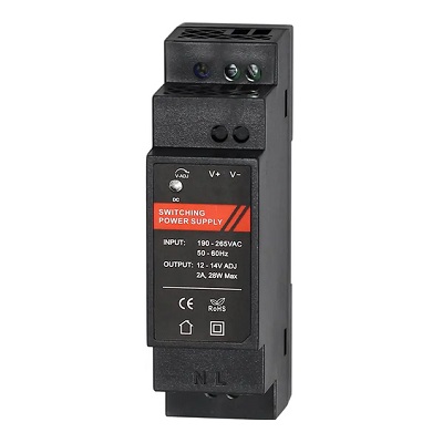 Резервированный источник питания с креплением на DIN-рейку; U-вх.190…260 В, U-вых.12…14 В (регулируется), I-ном.2 А, I-max.2.2 А; световая индикация режимов работы; защита от короткого замыкания, защита аккумулятора от глубокого разряда и чрезмерного заряда, переполюсовки; t-раб.-20…+50°C, 27х93х56 мм.