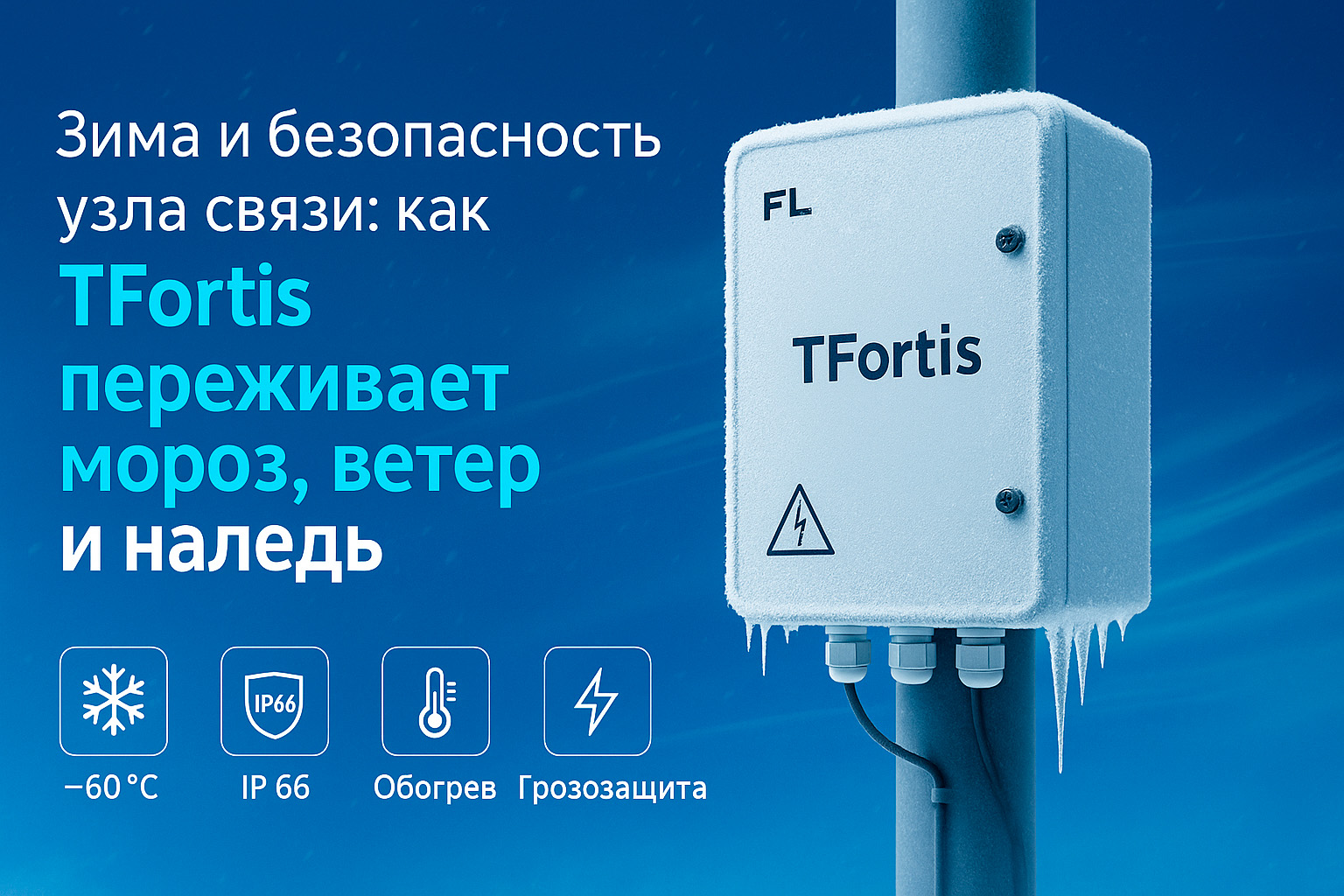 Корпус и климат: армированный поликарбонат, IP66, IK10; −60…+50 °C; наработка на отказ не менее 75 000 ч.