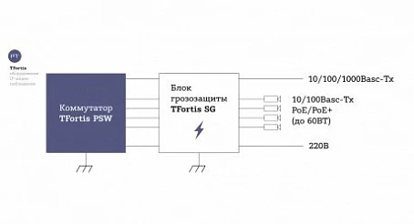 Внешний блок TFortis SG увеличивает уровень грозозащиты в коммутаторах TFortis PSW с 2 до 4кВ