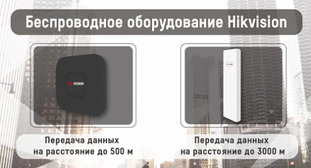 C 2018 года компания Hikvision представляет беспроводные устройства в линейке сетевого оборудования - беспроводные мосты, которые предназначены для построения сетей без использования проводов между сегментами. Беспроводные мосты Hikvision обеспечивают стабильную связь в случаях, когда использование проводов является невозможным или сложным: шахты лифтов, строительные площадки, парки, промышленные комплексы.