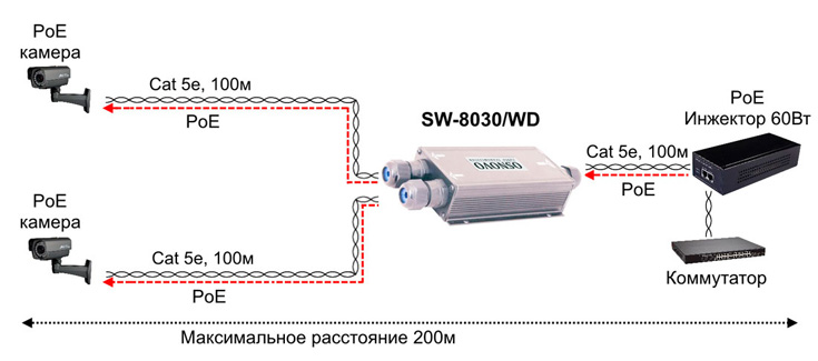 • максимальное расстояние для передачи данных составляет 170 метров;