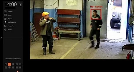 Модуль детектирует человека в кадре, определяет наличие каски на нем и в случае, если каска отсутствует, выдает сообщение: «Нет каски». Можно настроить выведение тревоги на экран, отправку уведомления на e-mail или push-уведомления на мобильный телефон.
