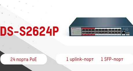 HiWatch представила новинку – неуправляемый коммутатор DS-S2624P. Модель имеет 26 разъемов. 24 подключения предназначены для передачи питания по технологии PoE, а также присутствуют гигабитные Uplink и SFP порты.