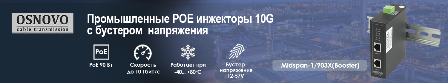 Представляем промышленный PoE-инжектор 10G Ethernet с мощностью до 90Вт