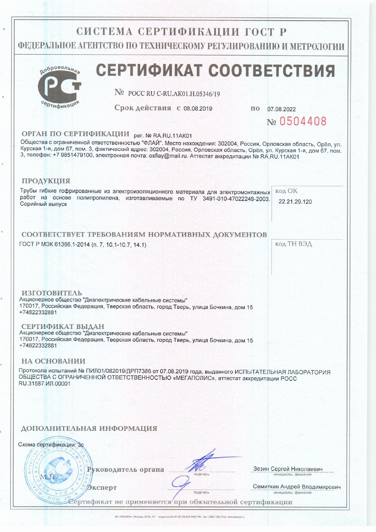 Сертификат Труба ПП гибкая гофр. д.32мм, сверхтяжёлая с протяжкой, 25м, цвет синий
