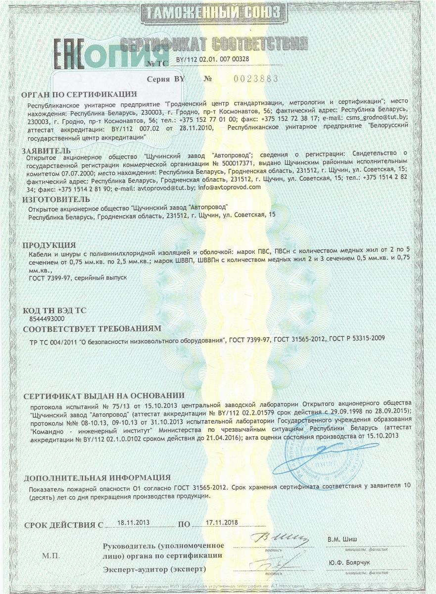 Сертификат Провод ПВС 2х1,5 100м ГОСТ Falcon Eye