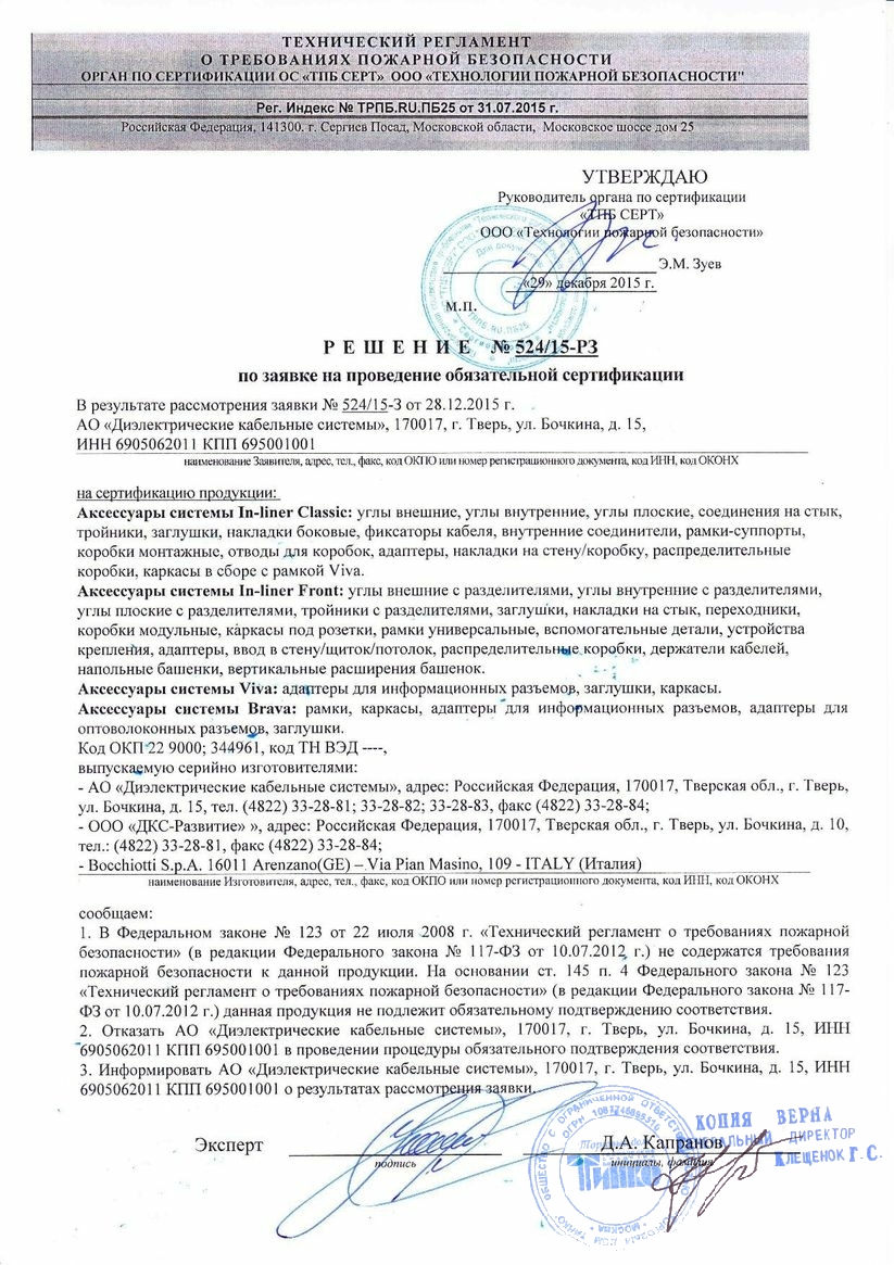 Сертификат соответствия Коробка распределительная 65х35мм IP44