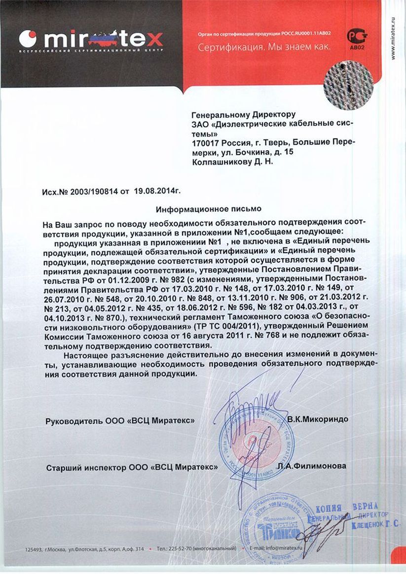 Сертификат FC-S2-9-LC/UR-SC/UR-H-10M-LSZH-YL