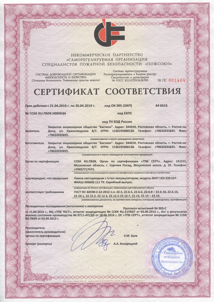 Сертификат FPC09-LCU-LCU-C1L-2M