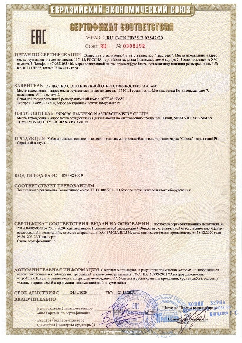 Сертификат ParLan F/UTP Cat5e PVCLS нг(А)-FRLS 2х2х0,52 (Паритет)