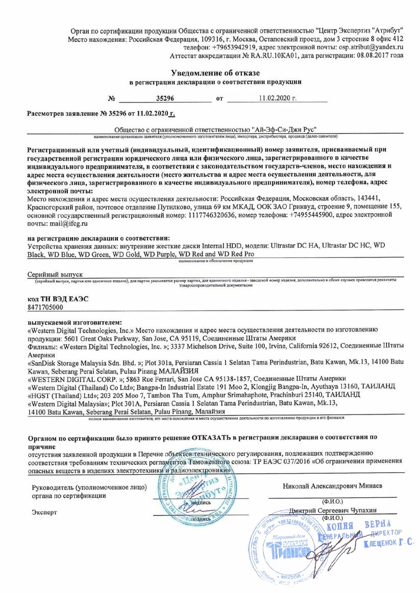 Сертификат Жесткий диск 8 Tb WD Purple Pro WD8001PURP