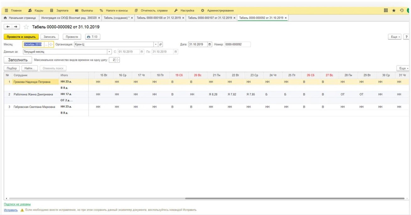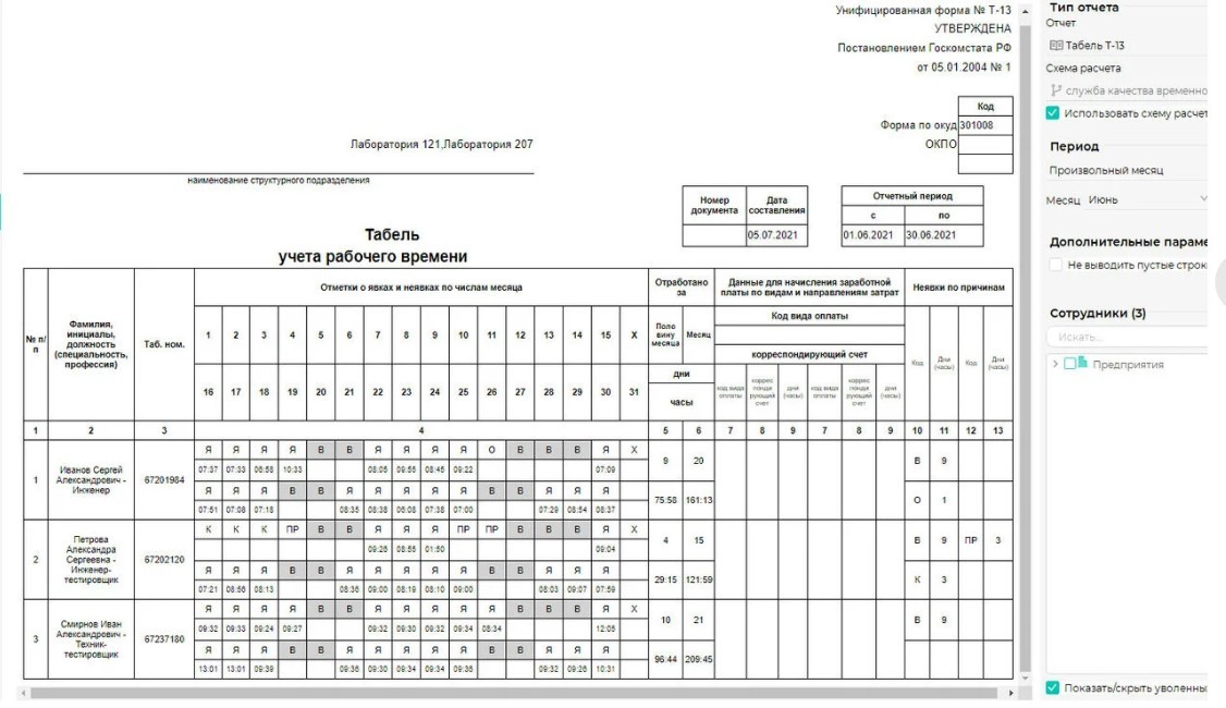 Интерфейс Модуль расширения «Учет рабочего времени»