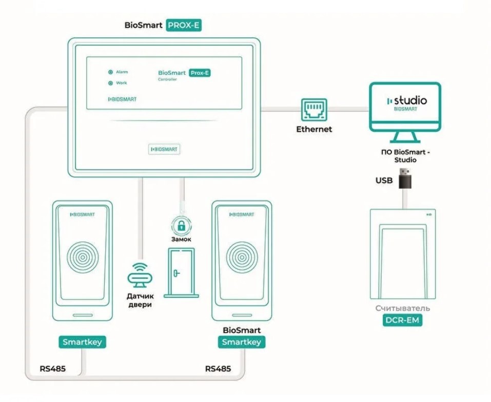 Схема СКУД BioSmart на RFID-картах BioSmart-Studio v6 SMART OFFICE