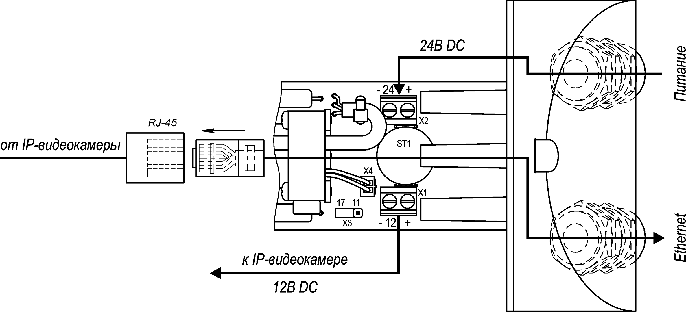 Схема подключения ТВК-190 IP (Apix 33ZBox/M3, f=4.3-129мм)
