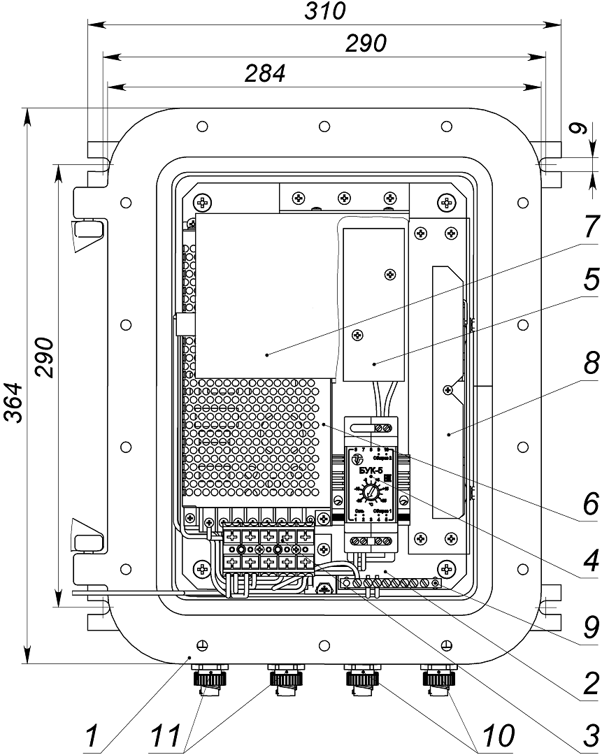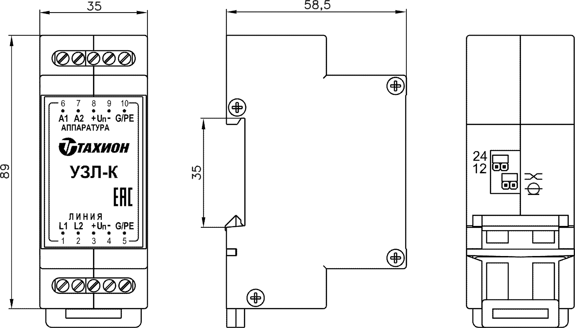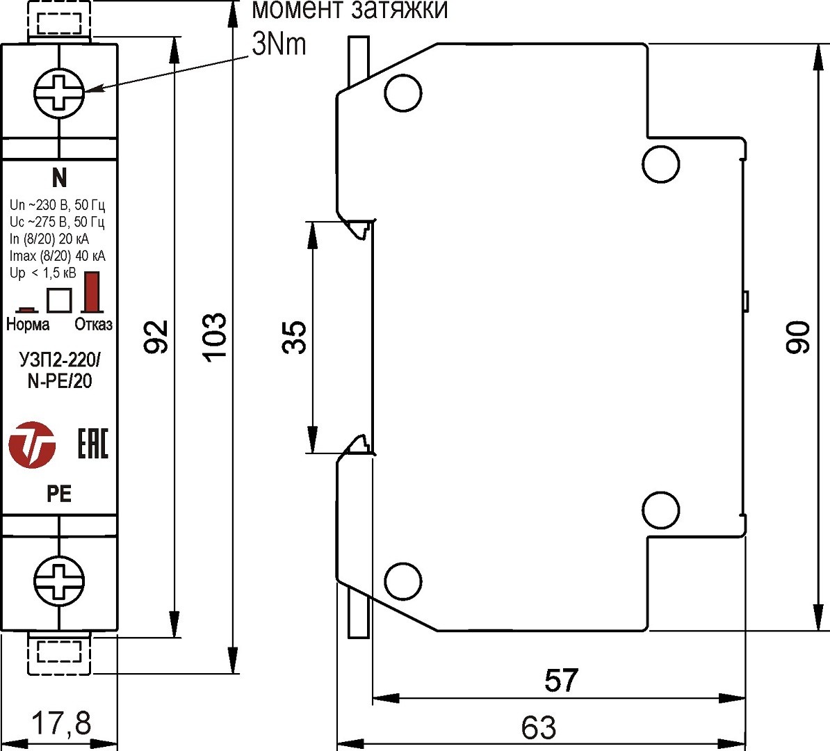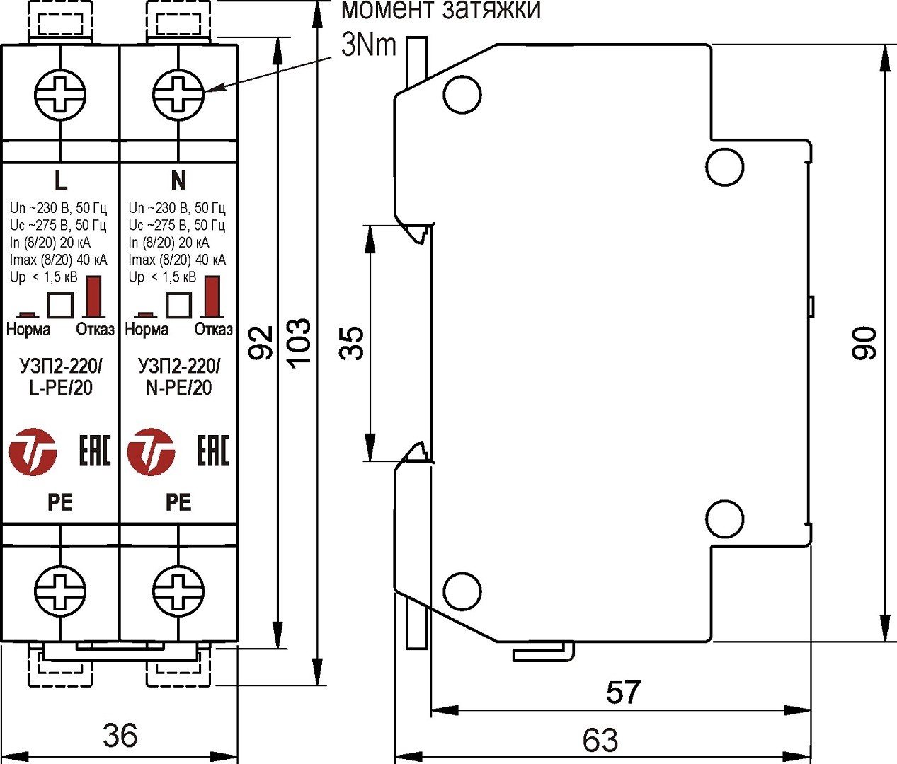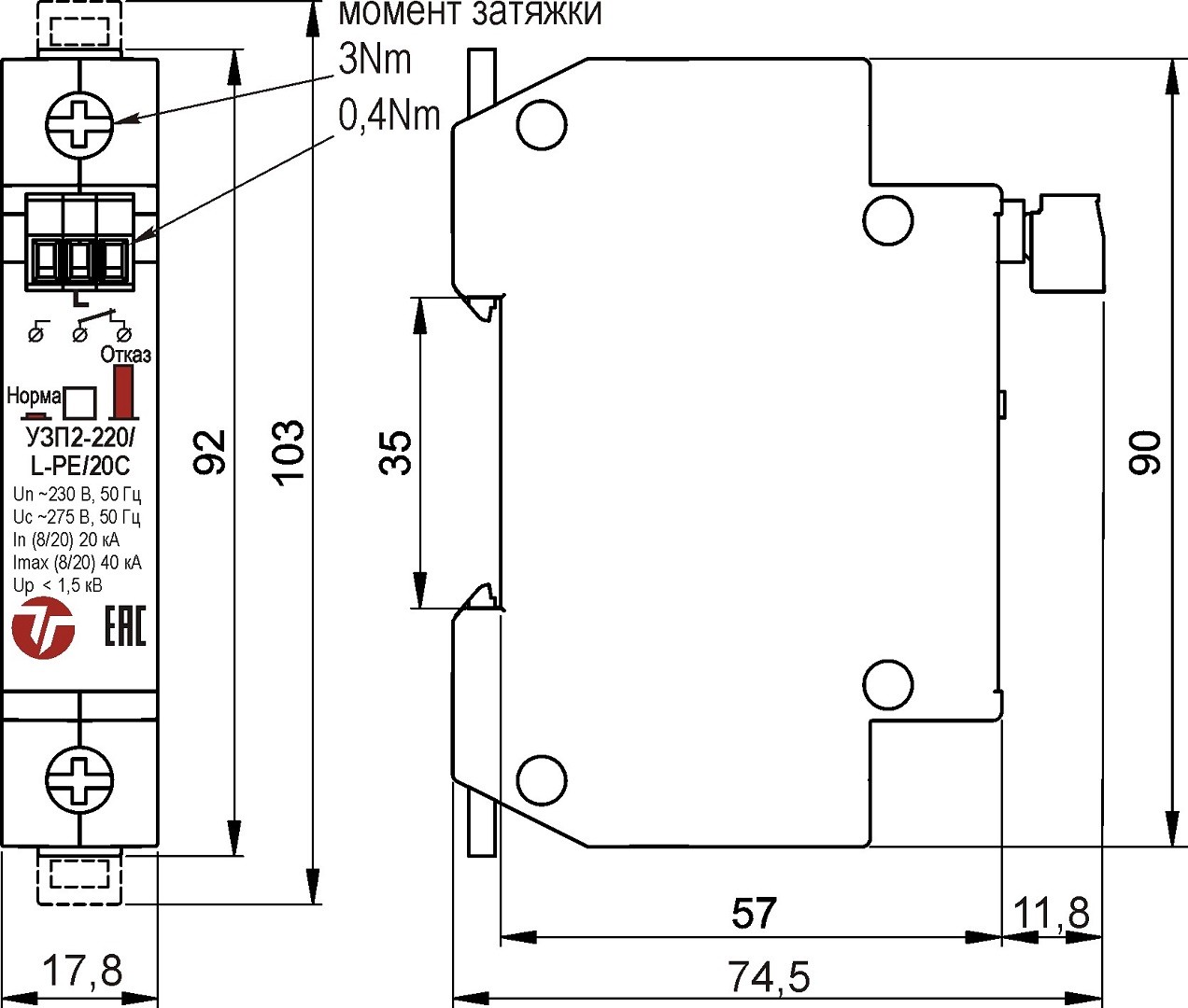 Габаритные размеры УЗП2-220К/3LN-PE/20