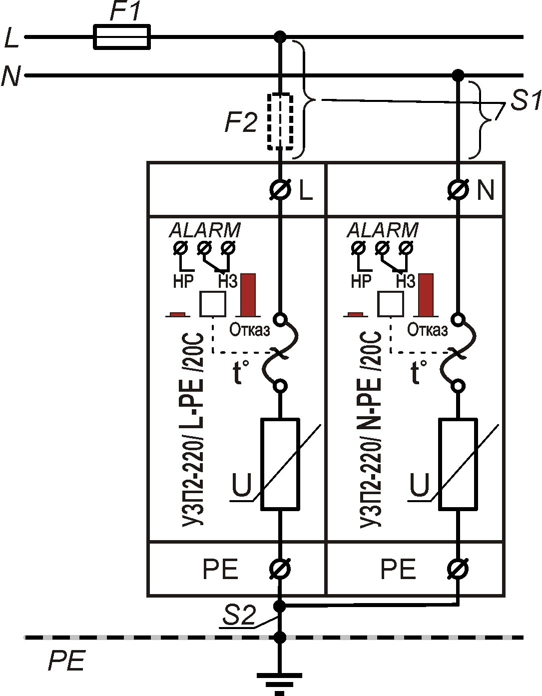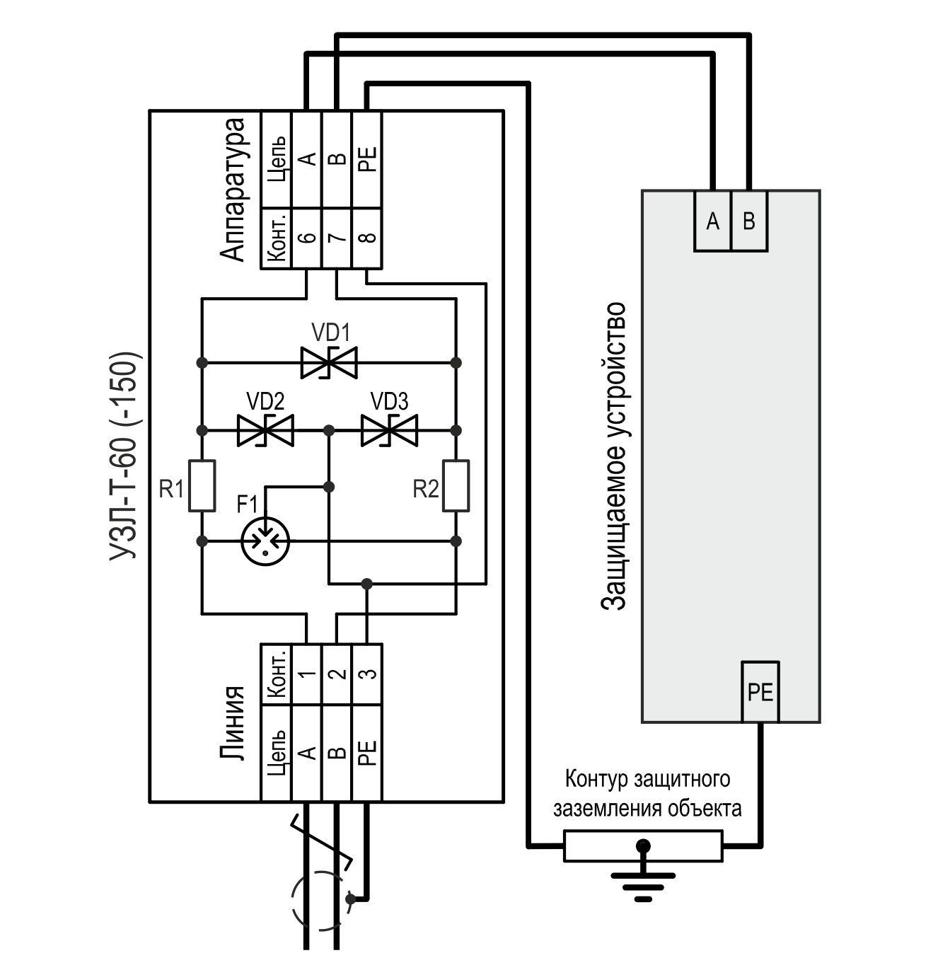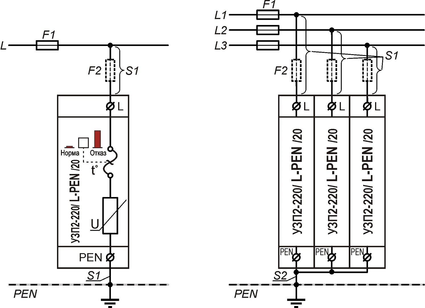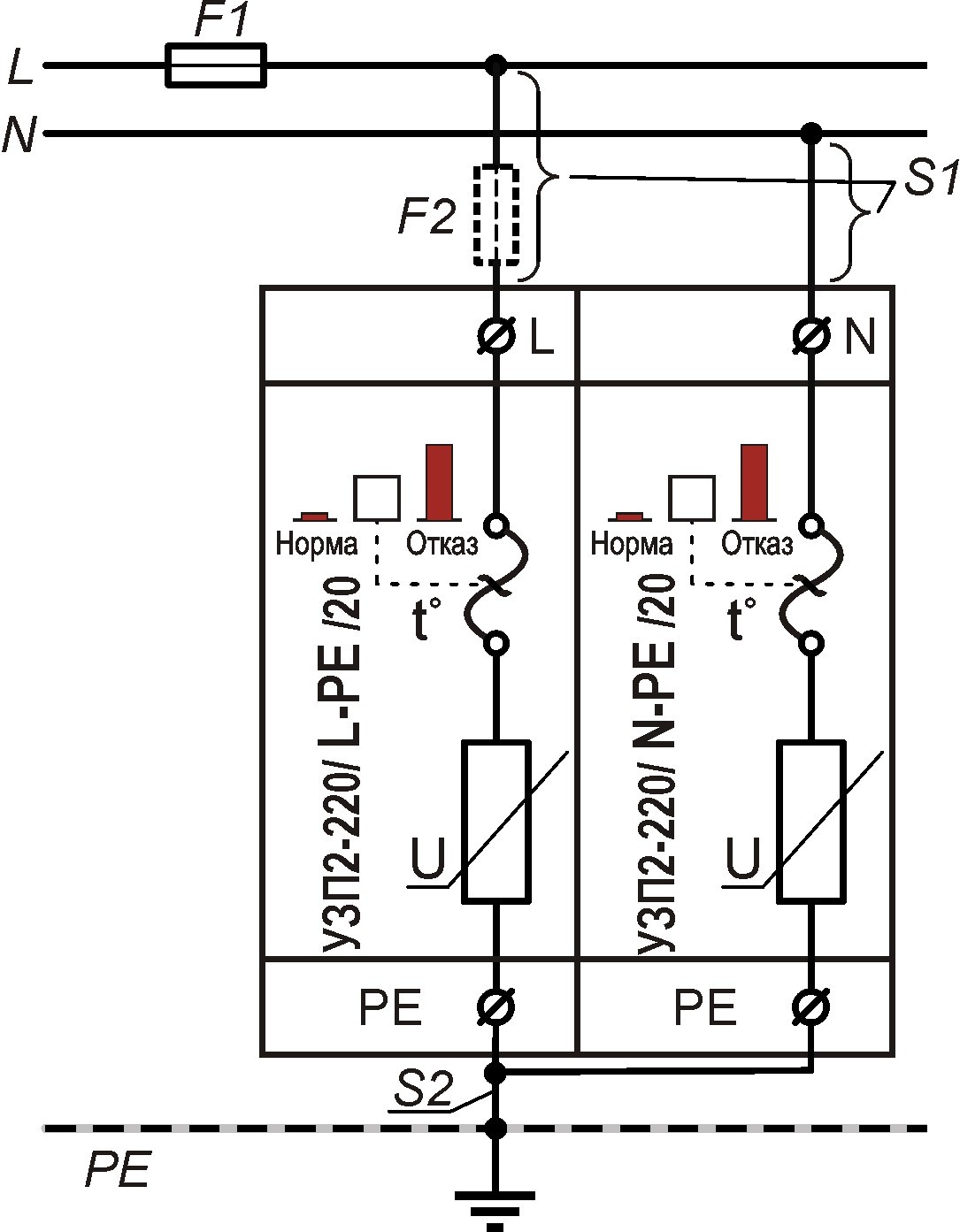 Схема подключения УЗП2-220К/3LN-PE/20С