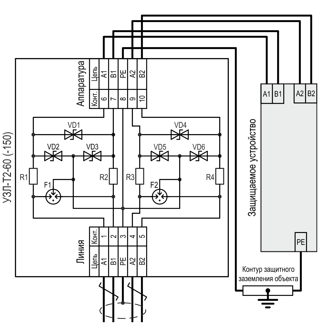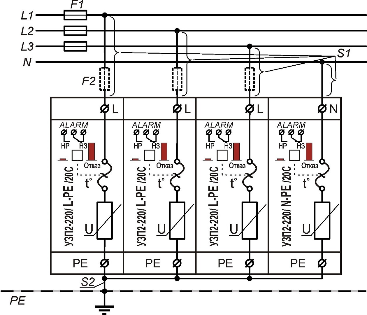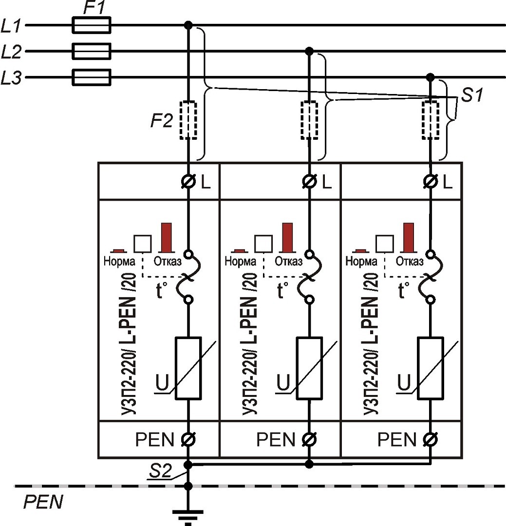 Схема подключения УЗП2-220К/3LN-PE/20С