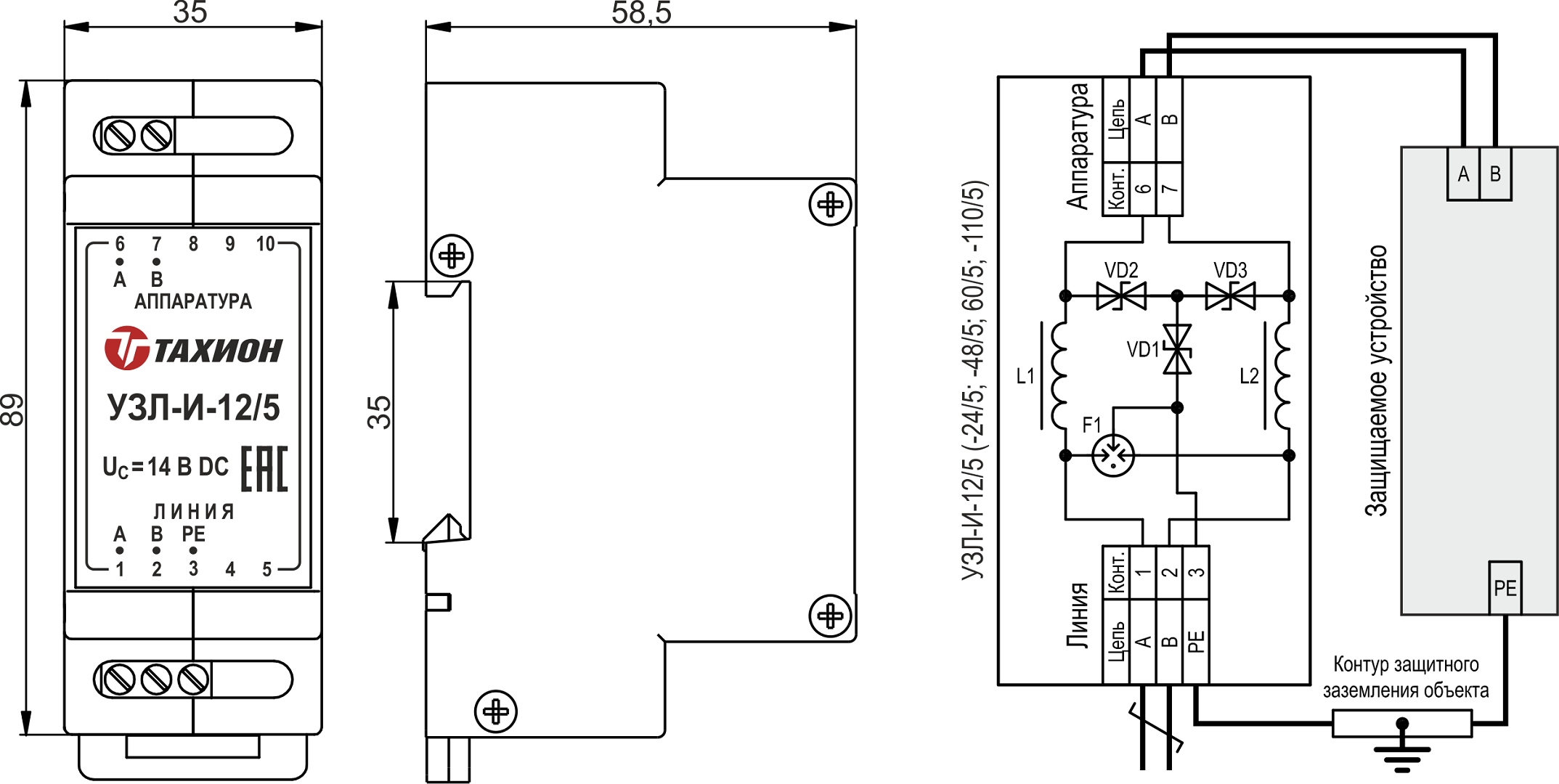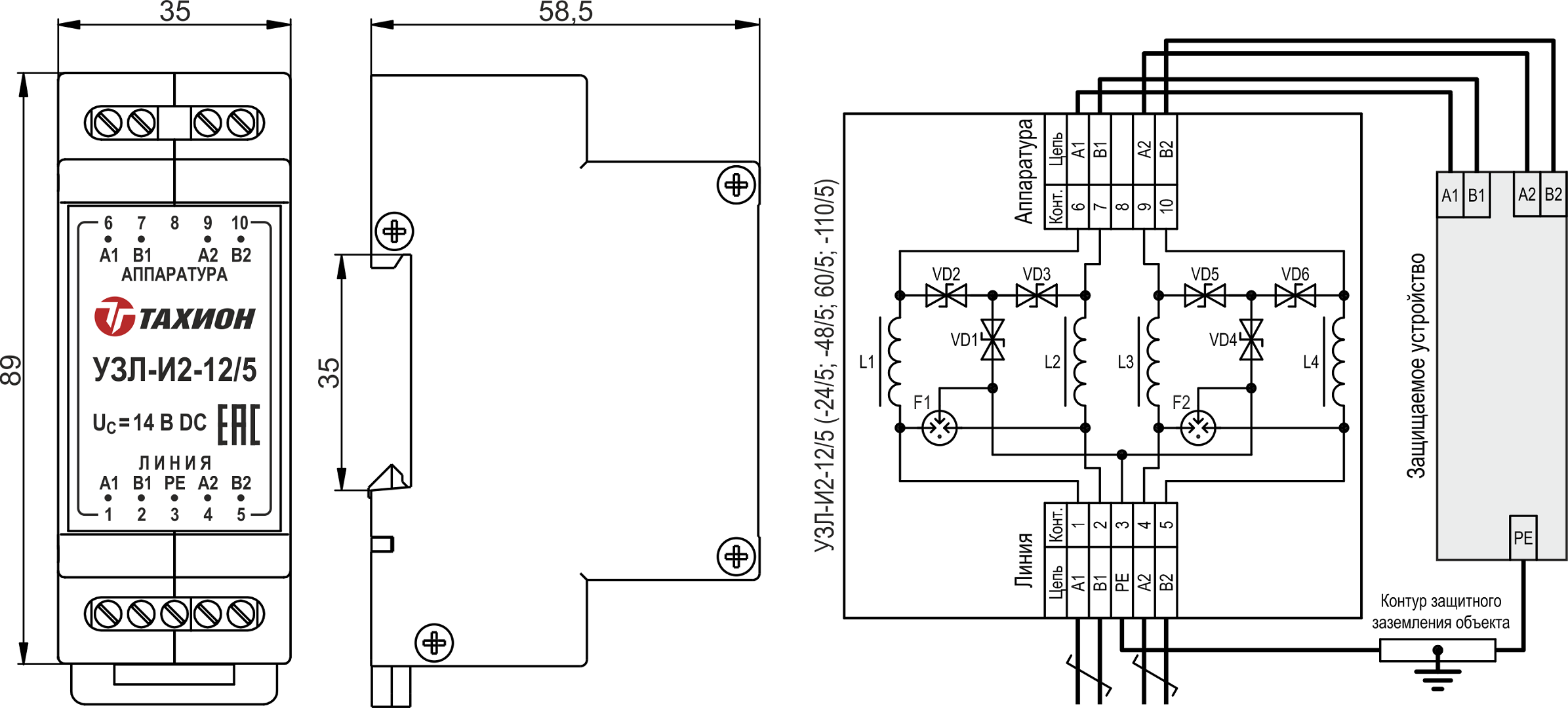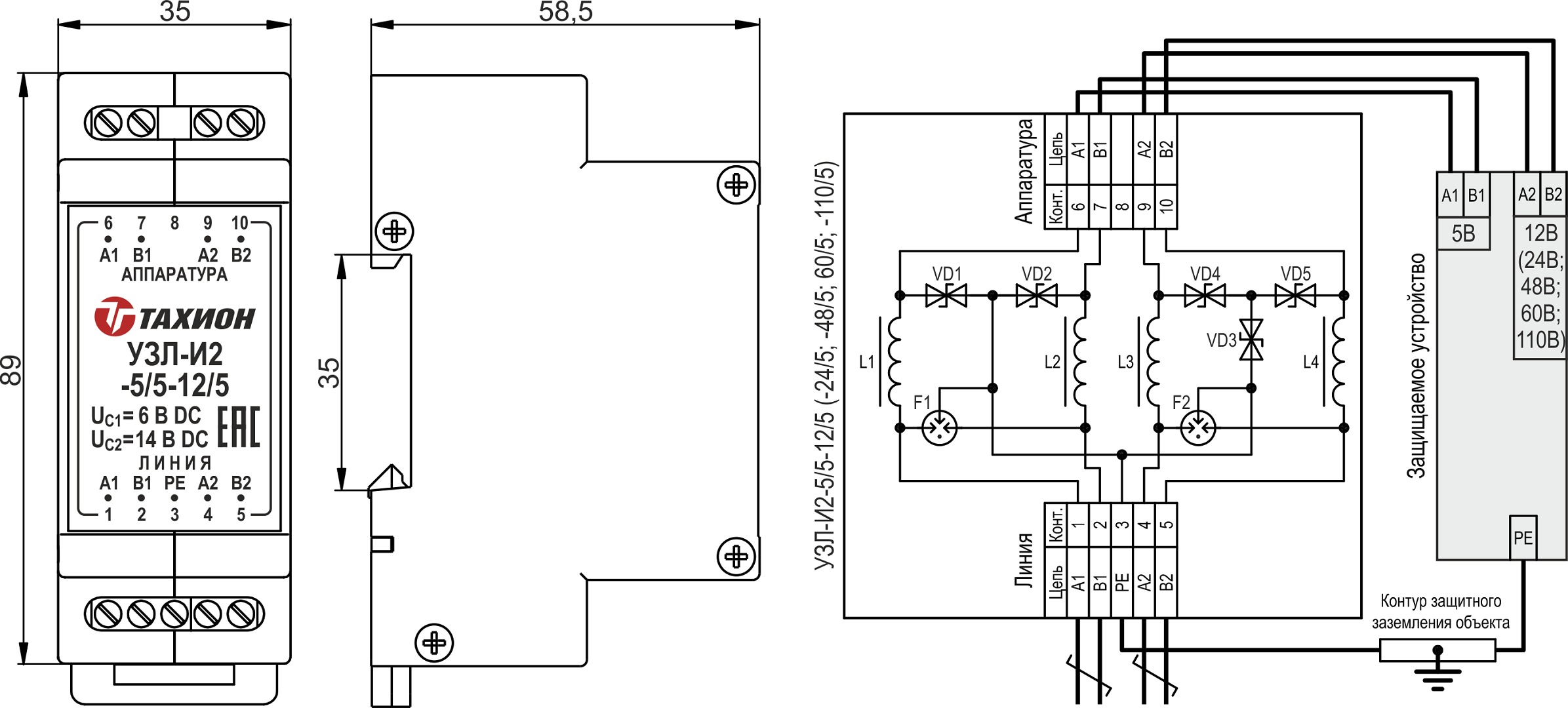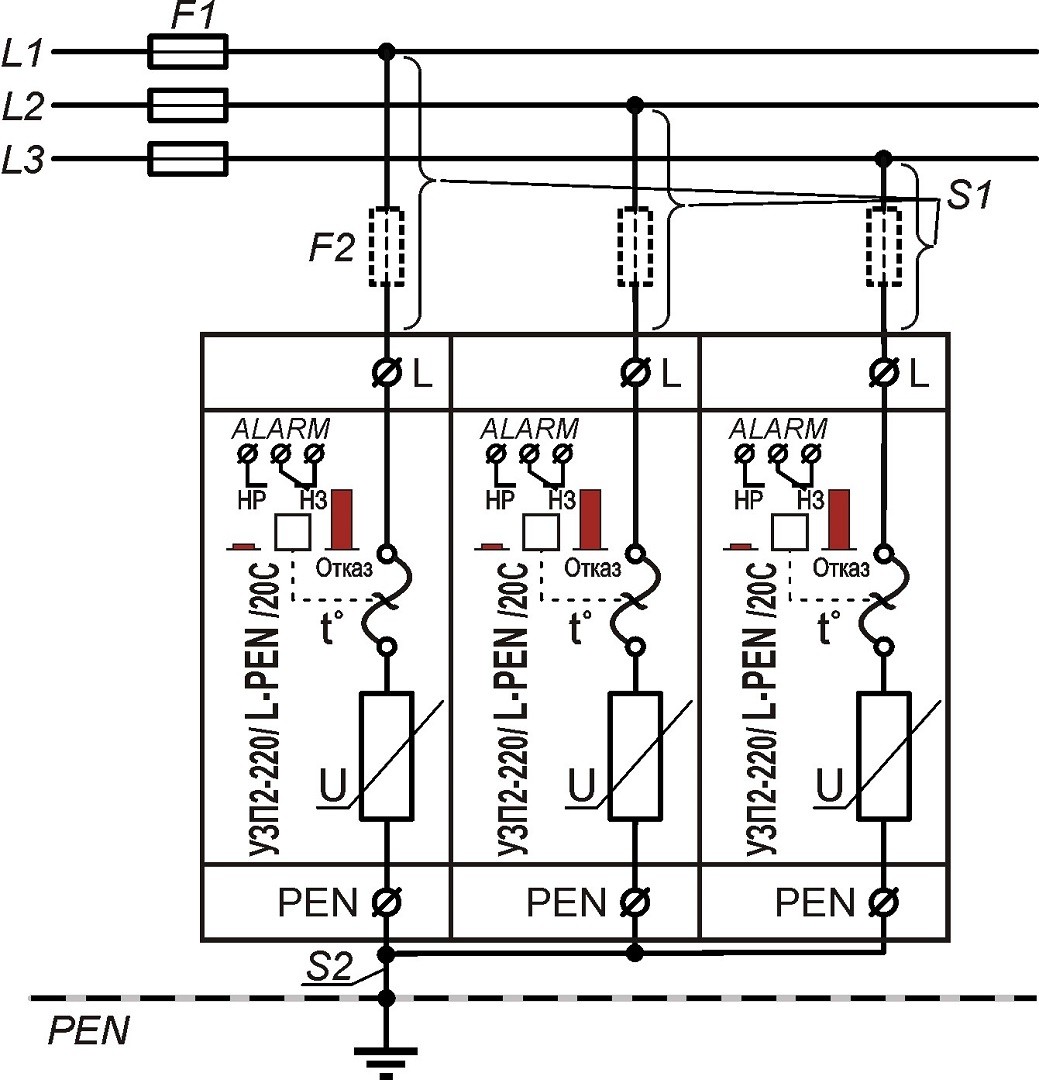 Схема подключения УЗП2-220К/3LN-PE/20С
