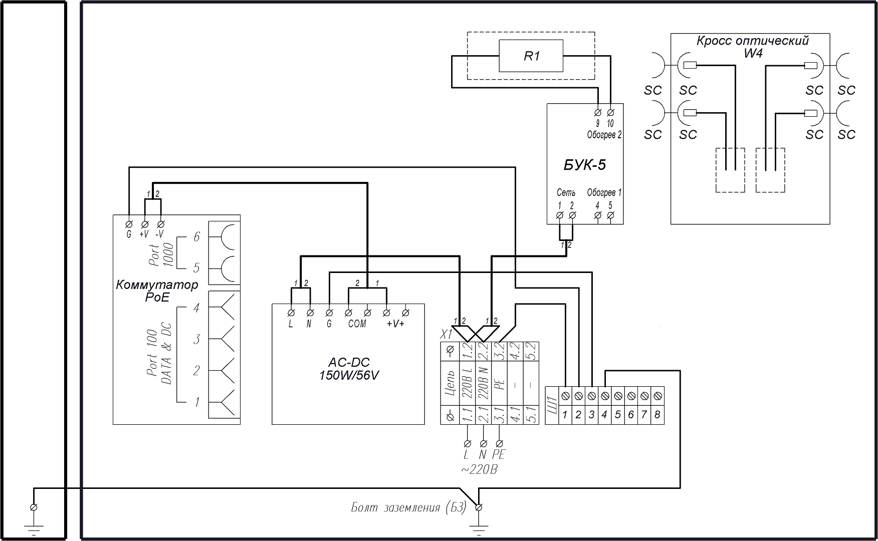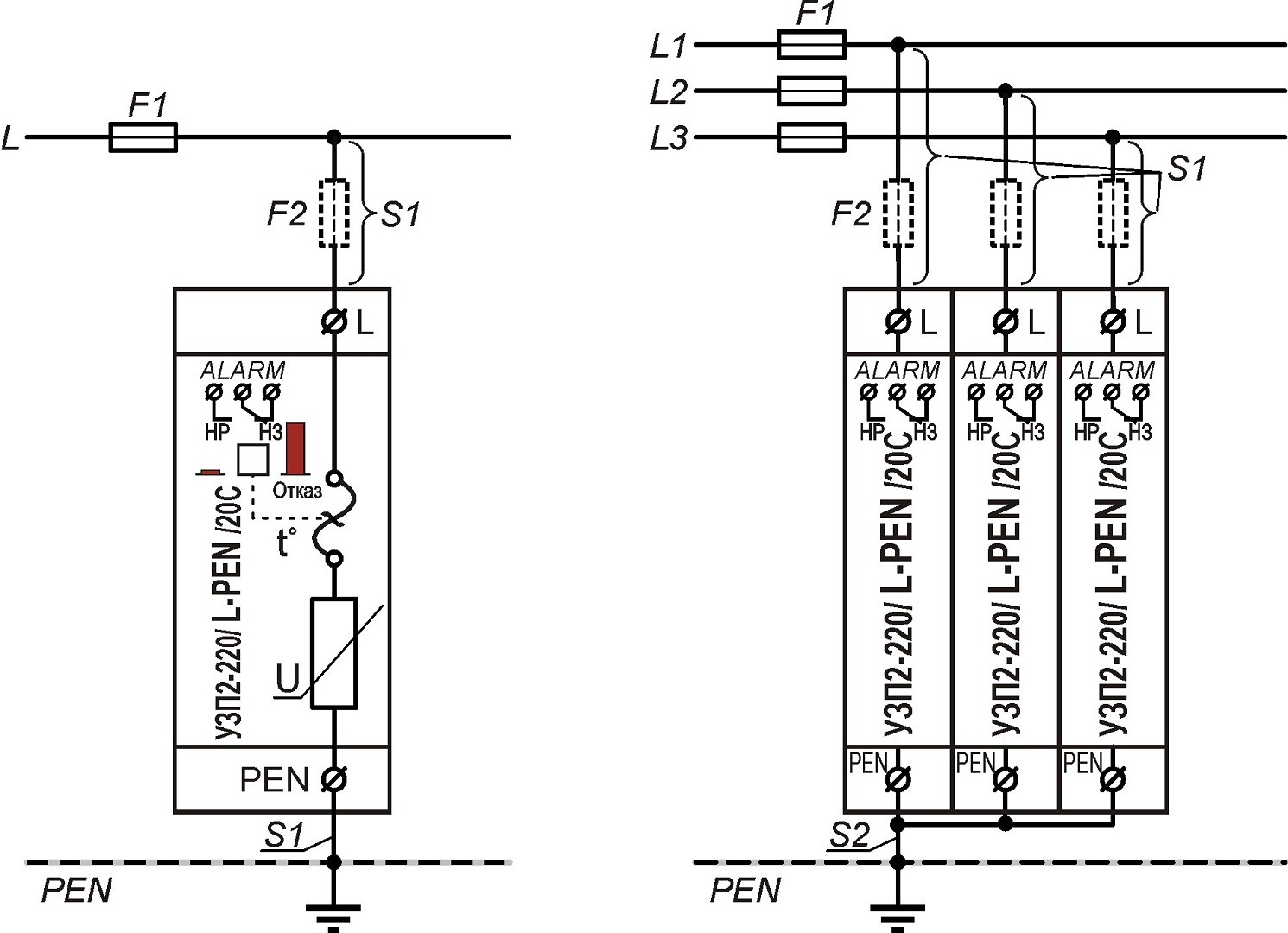 Схема подключения УЗП2-220К/3L-PEN/20С