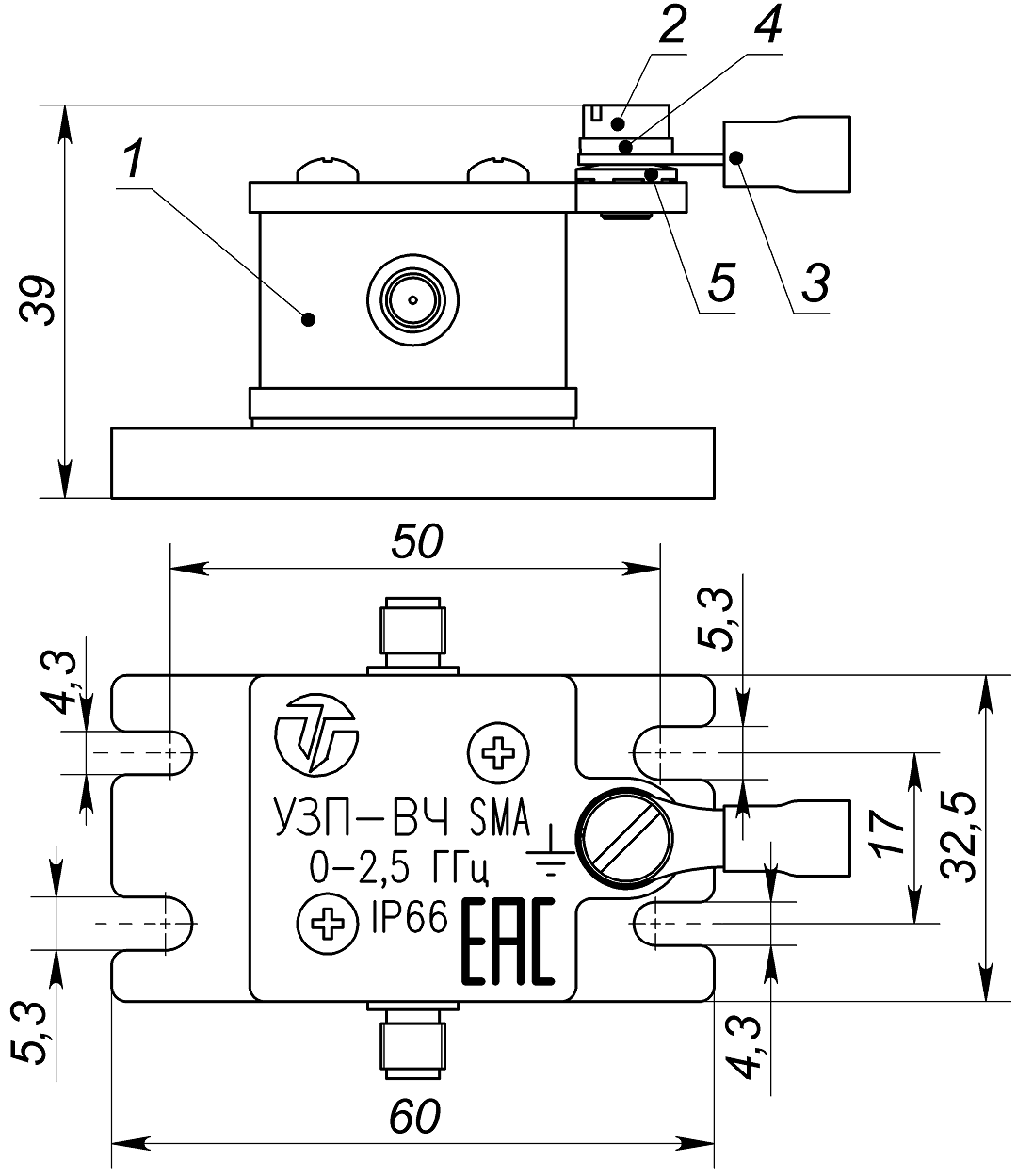 Габаритные размеры УЗП-ВЧ SMA (20120)