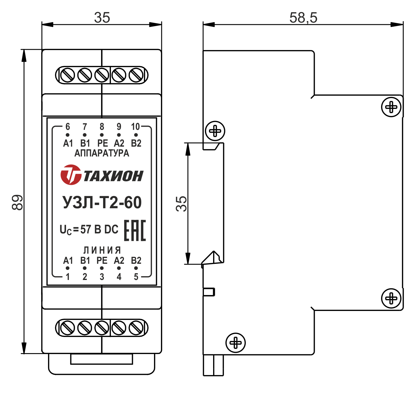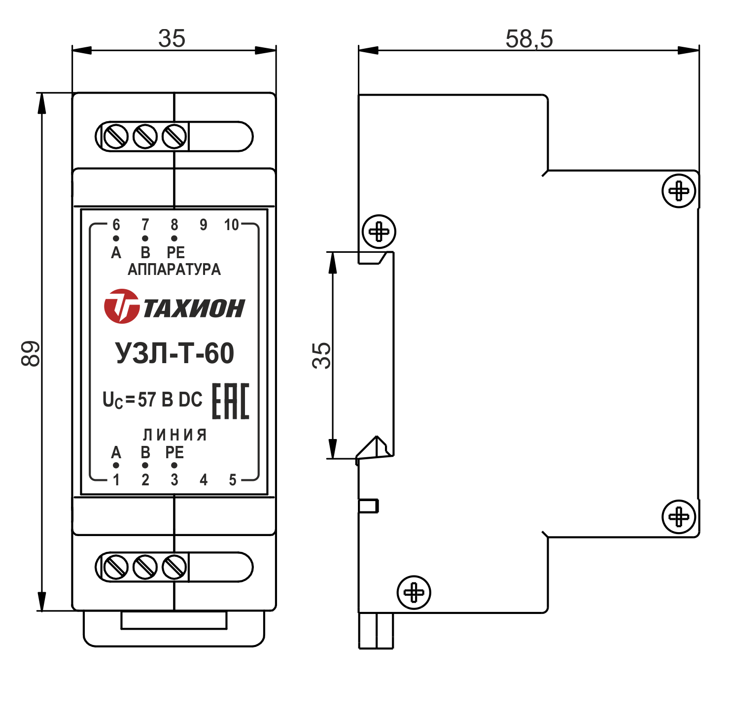 Габаритные размеры УЗЛ-Т-60 (-150)