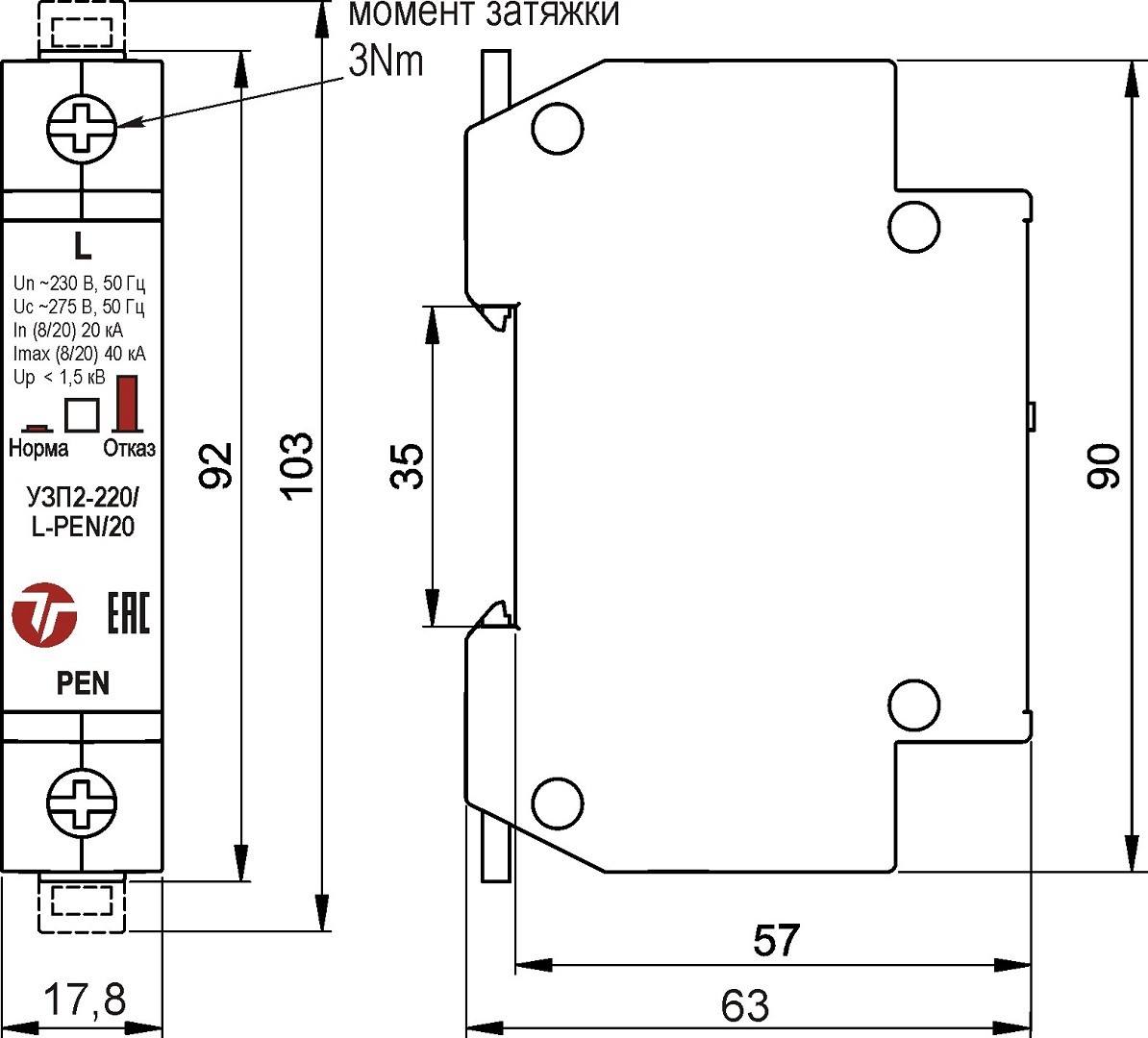 Габаритные размеры УЗП2-220К/3L-PEN/20