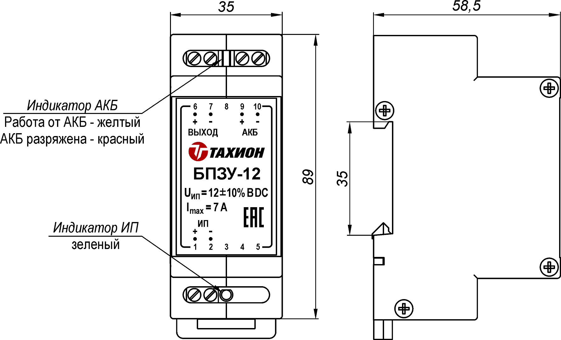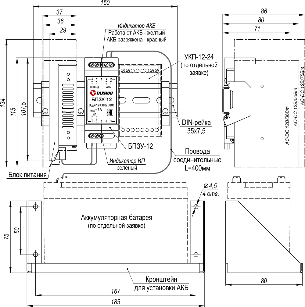 Габаритные размеры КБП-12/2 (12/3, 12/5)