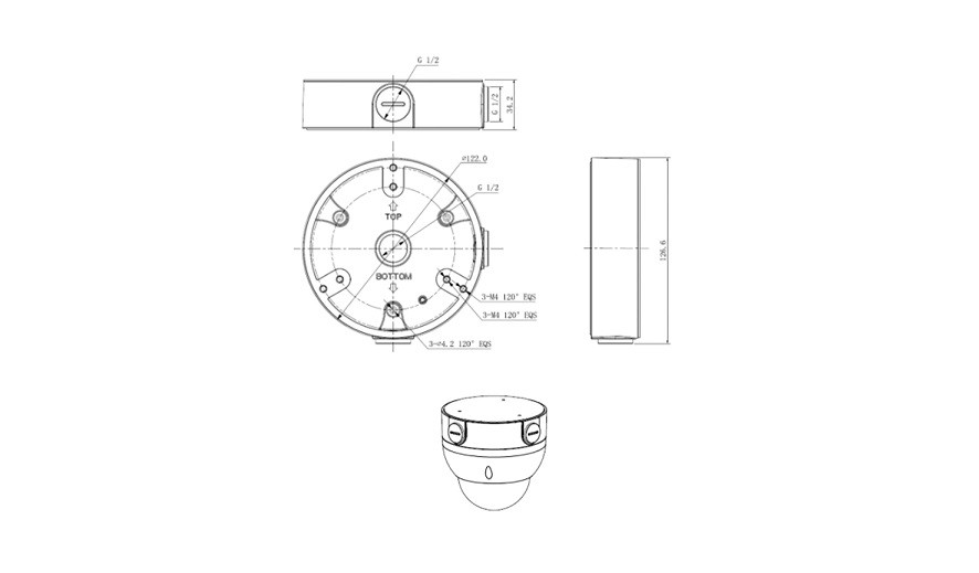 Чертеж Коробка распределительная 40-0300 для о/п безгалогенная (HF) 100х100х50 (60шт/кор) Промрука(40-0300)