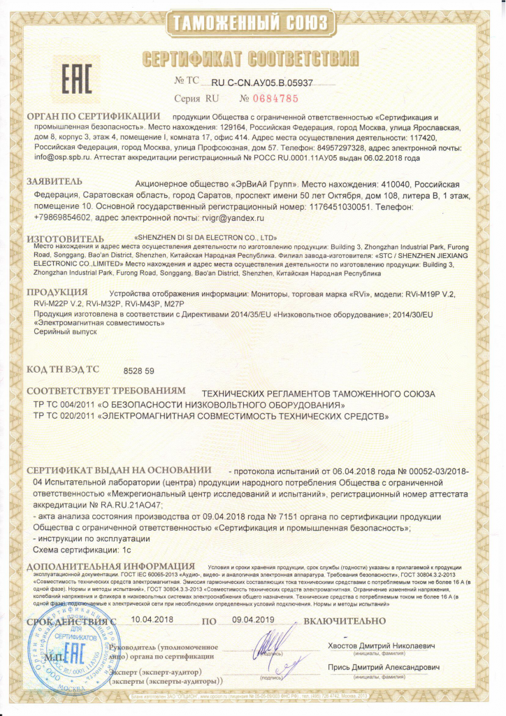 Сертификат RVi-MB5