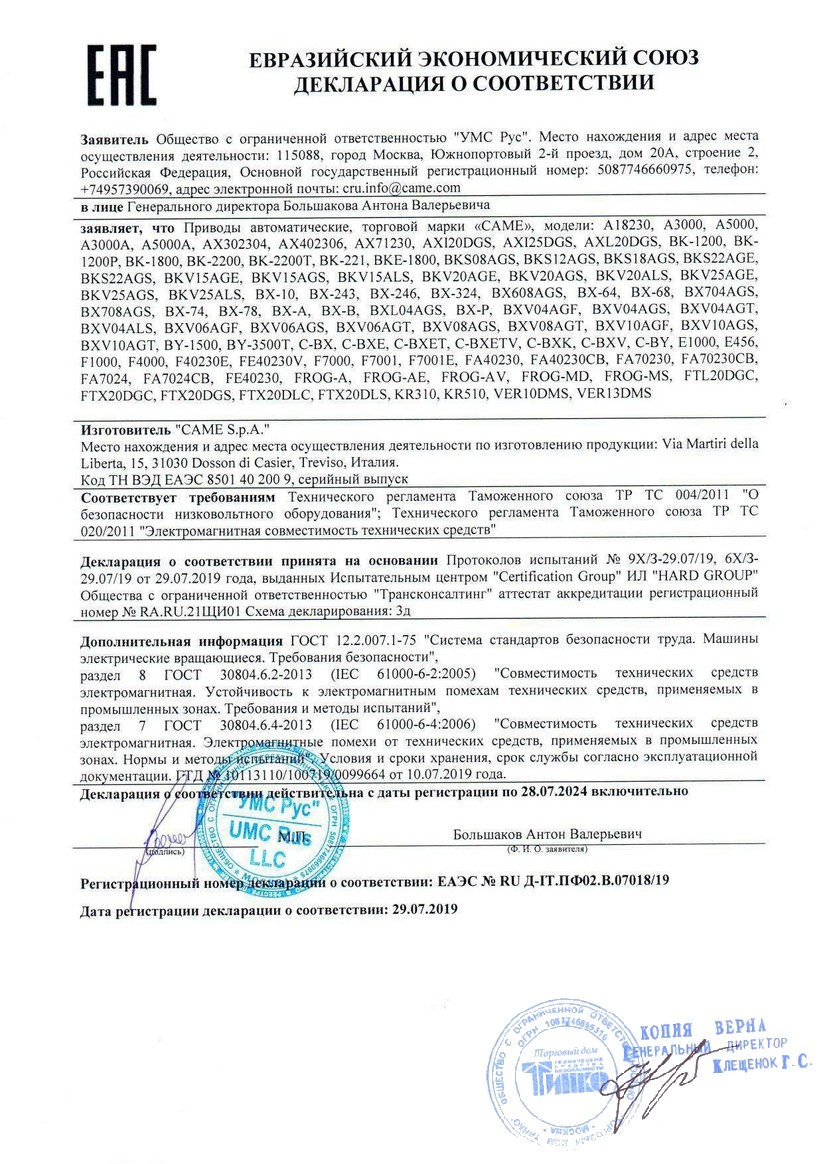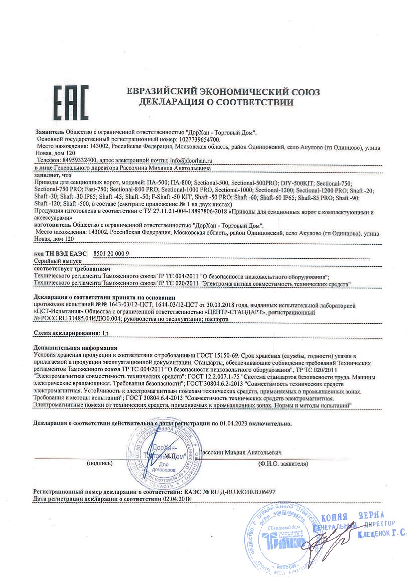 Сертификат 803XA-0320 Система защиты стрелы 90х60 от удара автомобиля для шлагбаума GT4