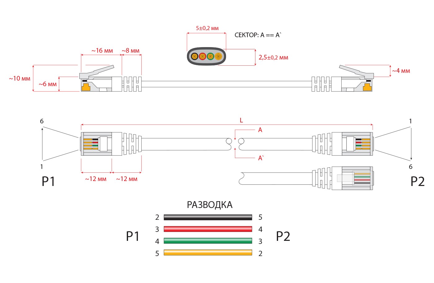 Чертеж PC-UTP-RJ45-Cat.5e-0.15m-BL-LSZH