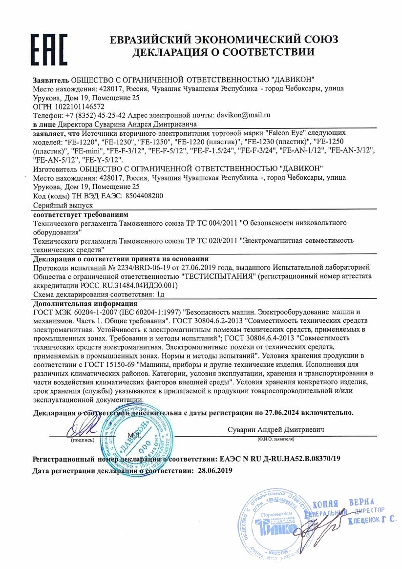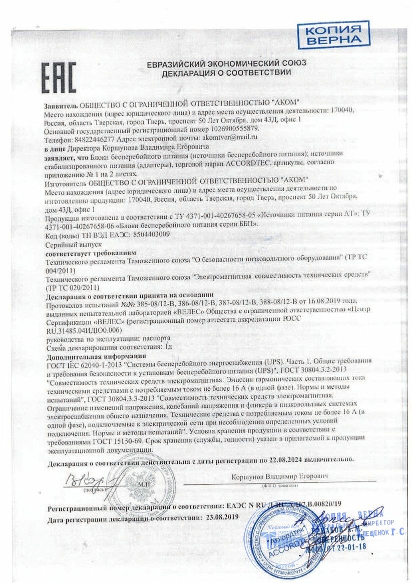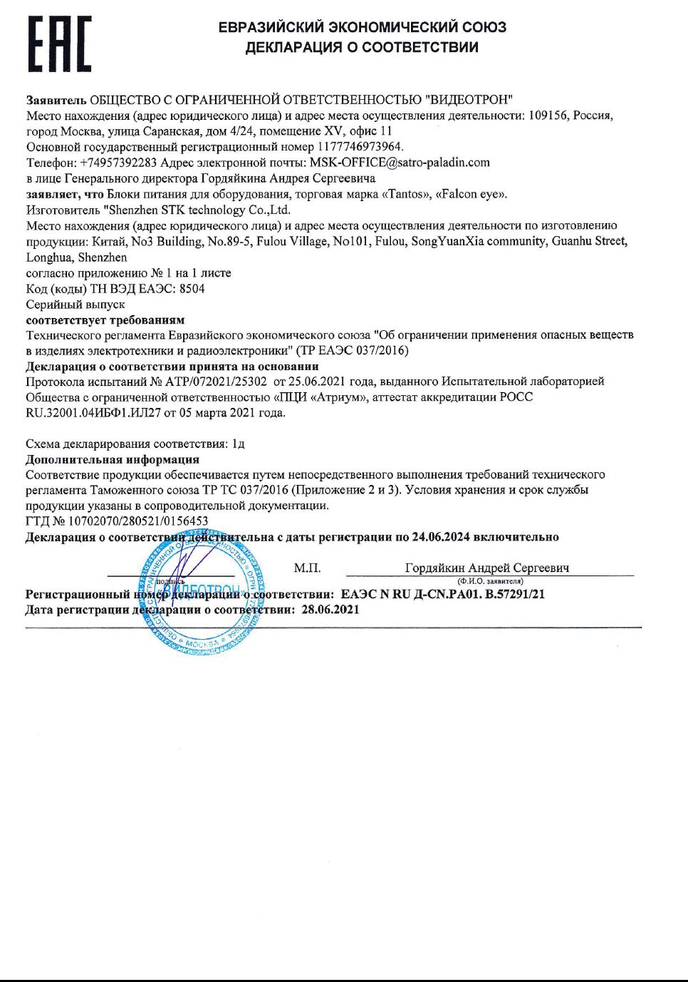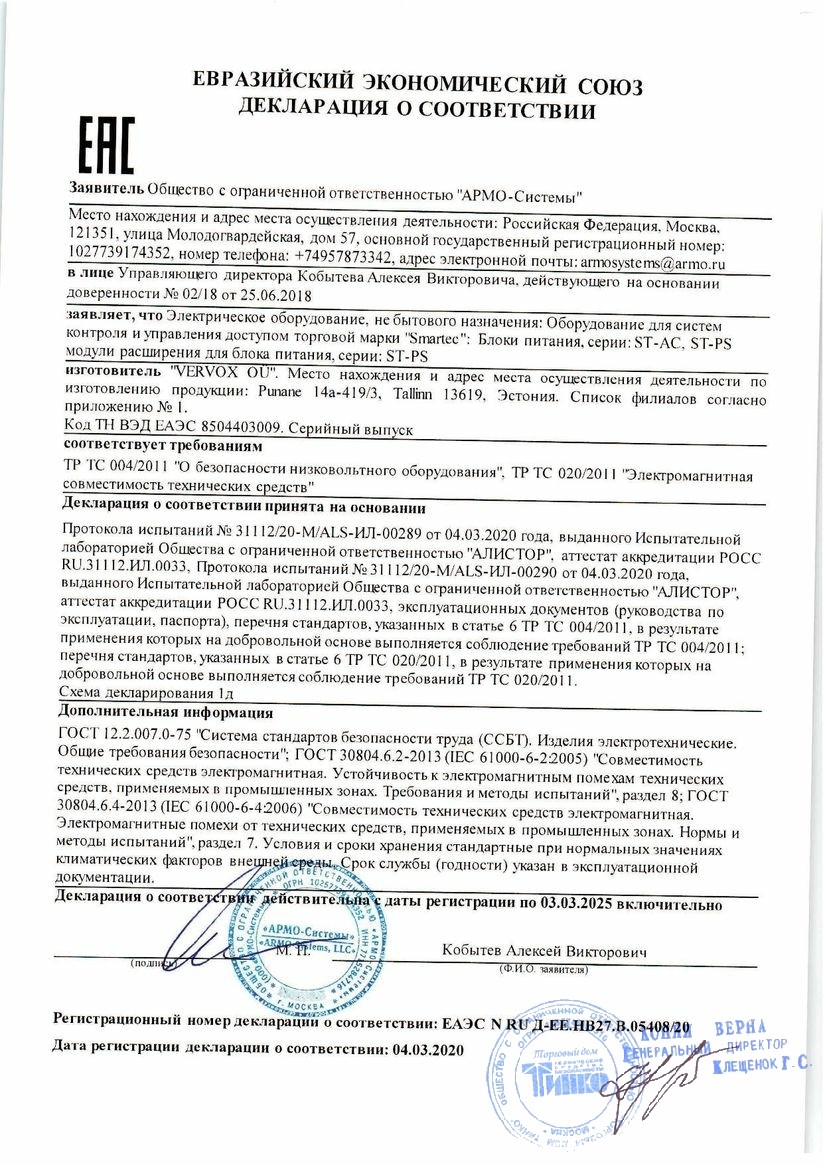 Декларация о соответствии ST-ББП-100 (С ЗАЩИТОЙ АКБ) (ВЕРСИЯ 2)