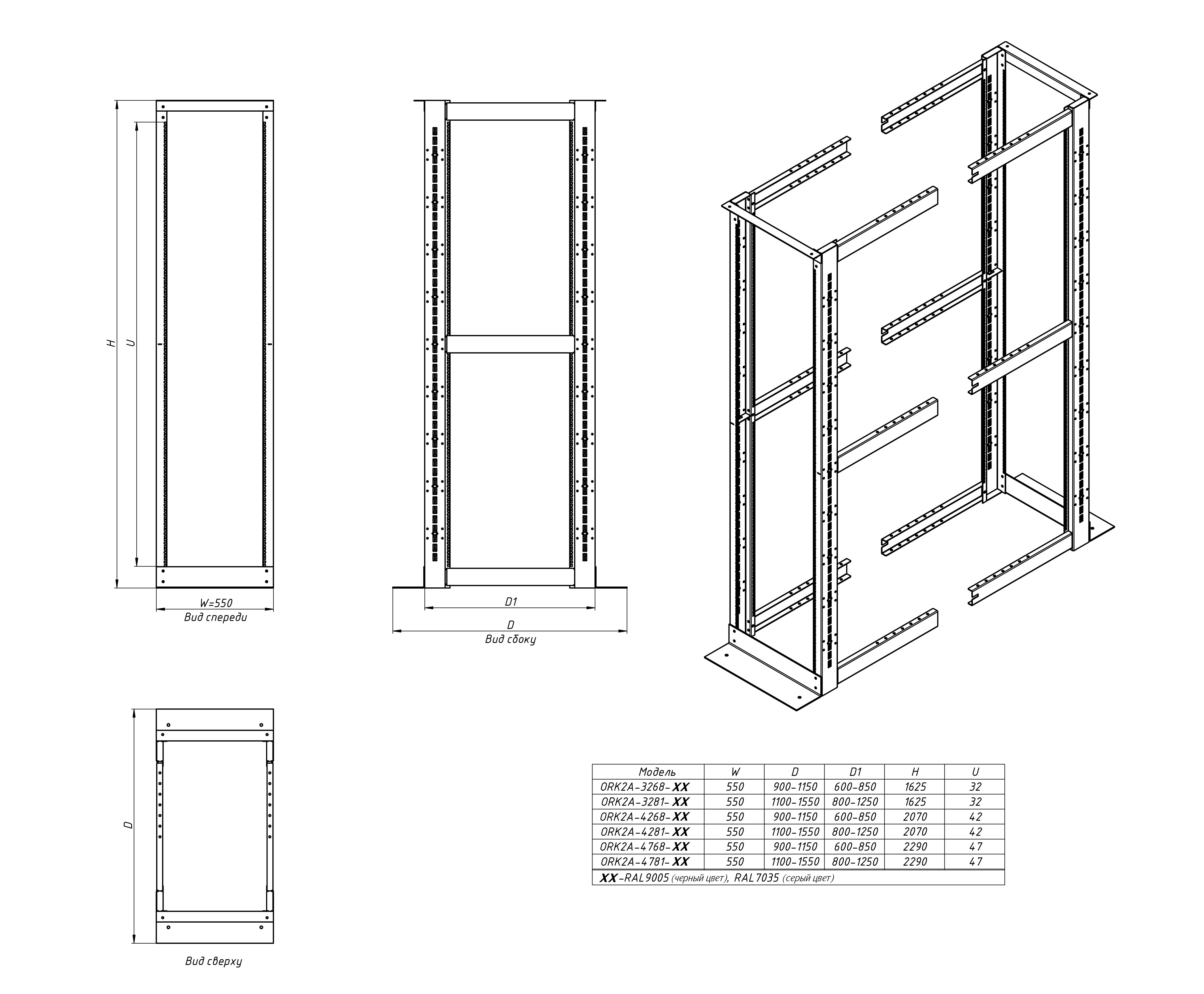 Чертеж Hyperline ORK2A-3281-RAL9005 Открытая стойка 19-дюймовая (446057)