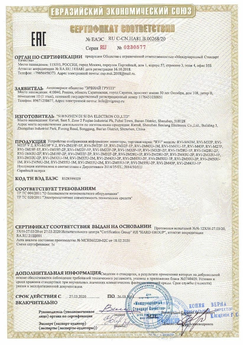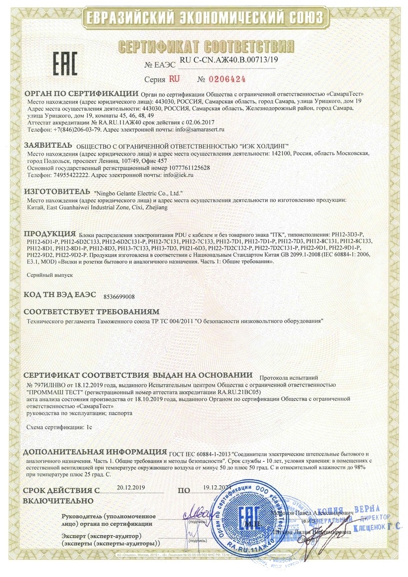 Сертификат WS-8P8C-Cat.5e-SH-1
